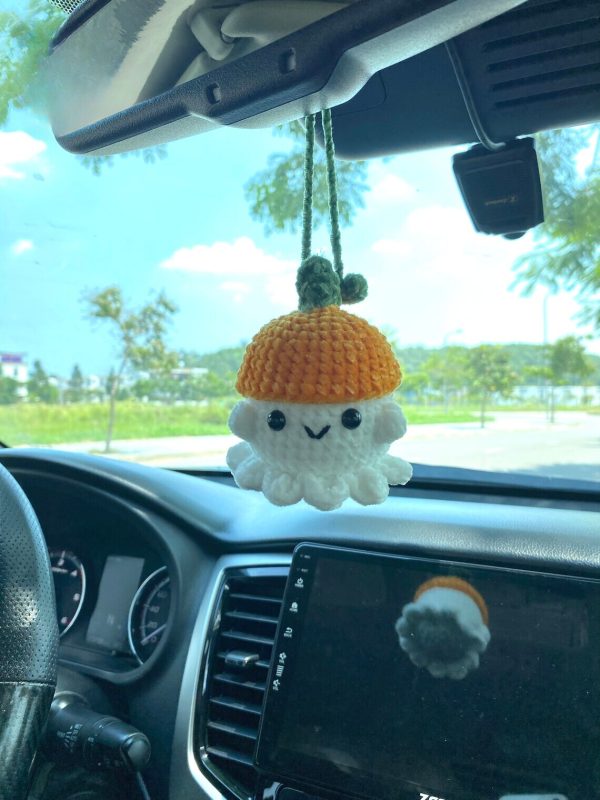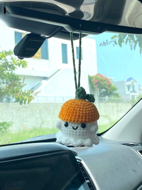 Materials: This cutie ghost wearing pumpkin hats car pendant is crocheted with arylic yarn, soft for skin, safe eyes.