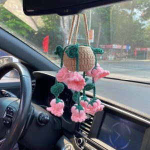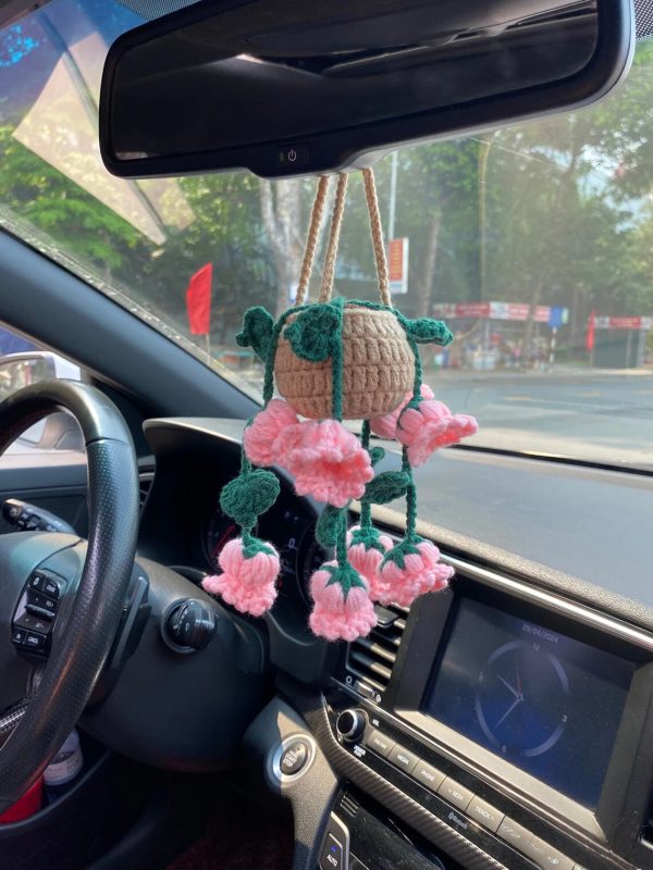 Crochet Lily Of The Valley Car Hanging, Crochet Succulent Plants Hanger, Car Mirror Decor, Car Accessories For Women, Car Mirror Ornament
