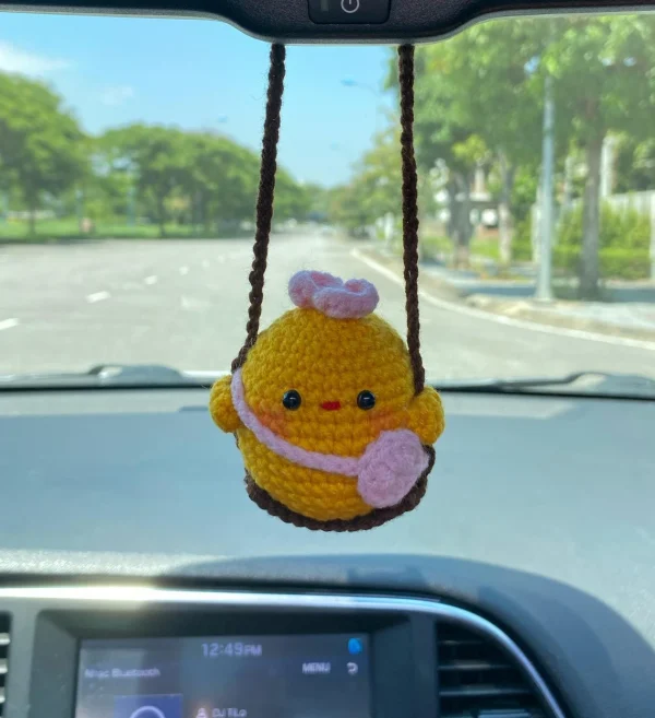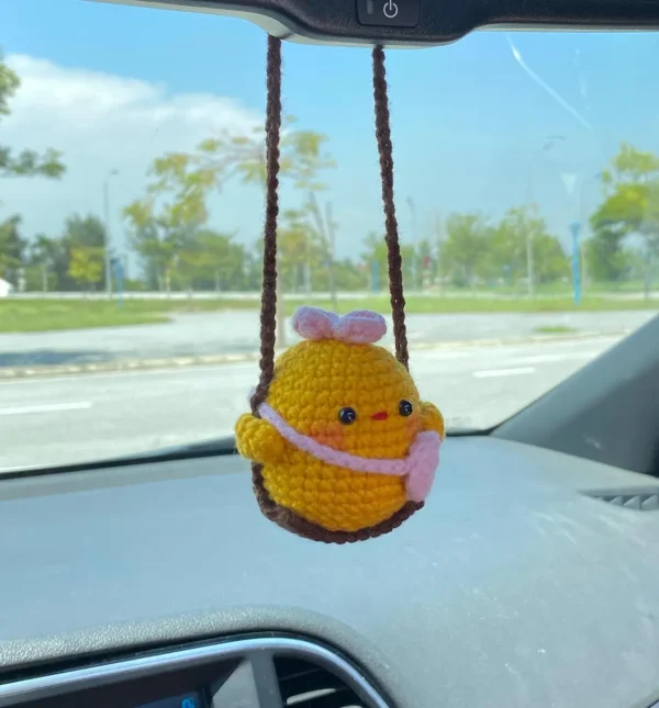 If you are looking for a meaningful handmade gift, this cute chick on a swing car ornament will be great choice to you. You can hang car ornament on your car, your garden, your bookshelf or any corner you like.